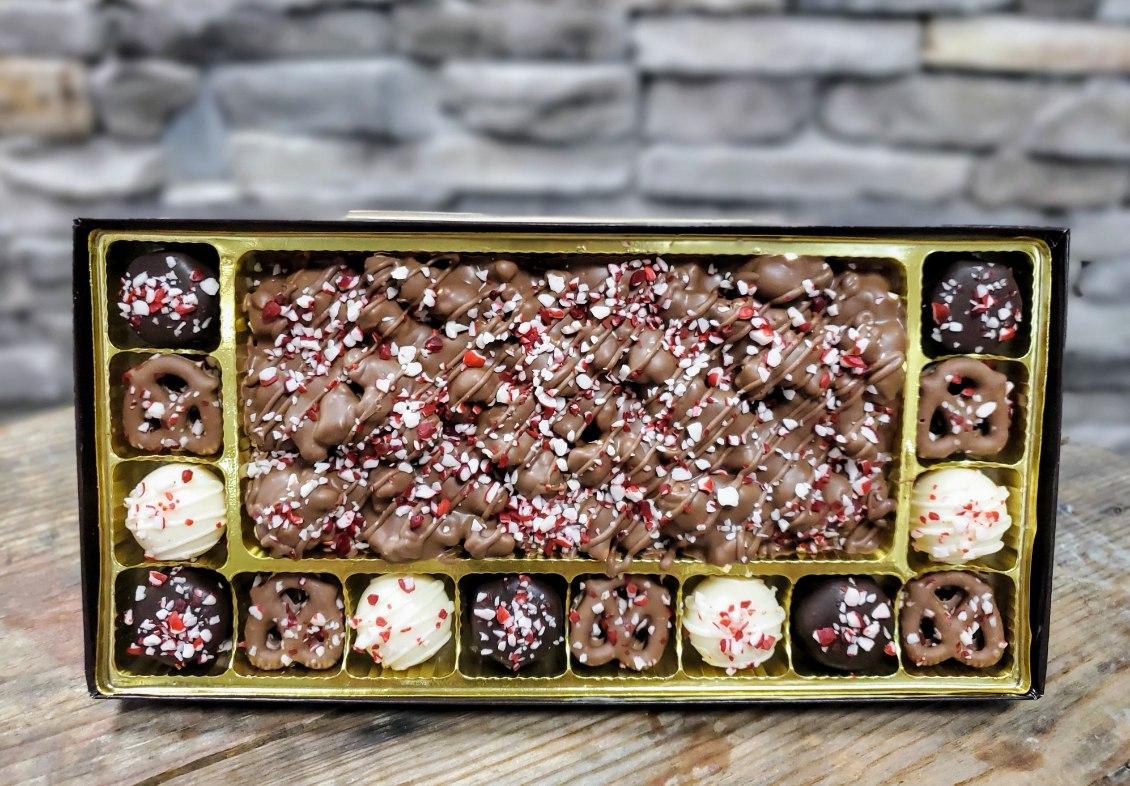 A festive celebration of peppermint indulgence, The Wintermint Collection is a carefully curated seasonal assortment that captures the spirit of the holidays in every bite. Each box features a blend of textures and chocolates, including: